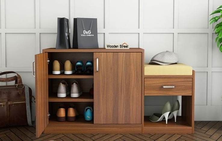 Wood Shoe Rack With Seat and Storage Drawer (Exotic Teak Finish)
